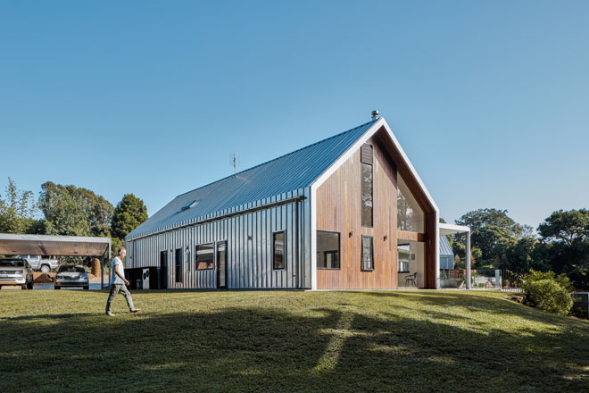 Hiland Tray Roofing & Walling creates the perfect duo for this stunning Australian woolshed and European mansard-inspired Byron Bay Home.