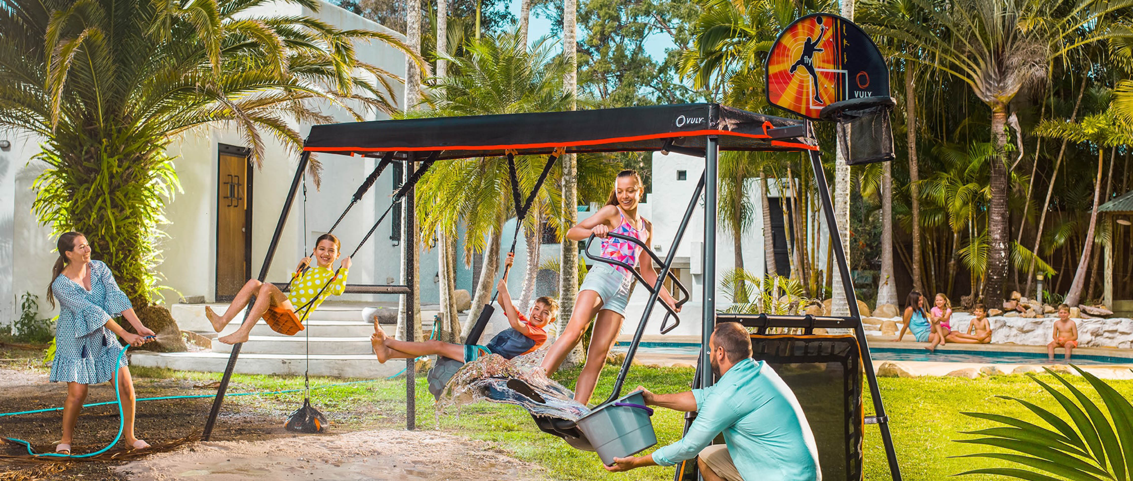 Our Vuly 360 Play Sets and Vuly Trampolines can provide hours of entertainment! The Vuly 360 Play Set comes with heaps of different attachments to suit everyone’s interests: from cubbies and soccer goals to nine unique swings! With four different Trampoline styles in our range there is sure to be one to suit your backyard and budget. Basketball, speaker and water mister attachments are also available for purchase.