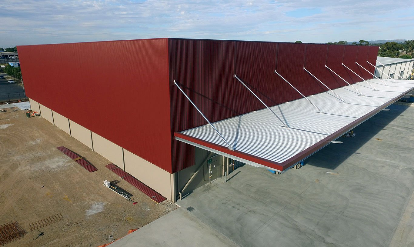 Stratco Maximus wall cladding has recently been applied to this huge 14 metre high, 3000m2 warehouse facility in Adelaide, South Australia.