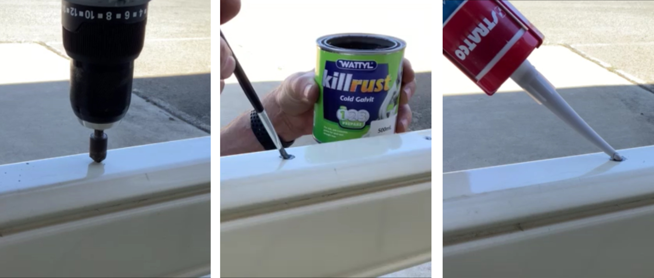 As existing holes left untreated may cause corrosion issues and reduce the overall life of the Outback patio, prior to installing the new roof sheeting it is recommended that: