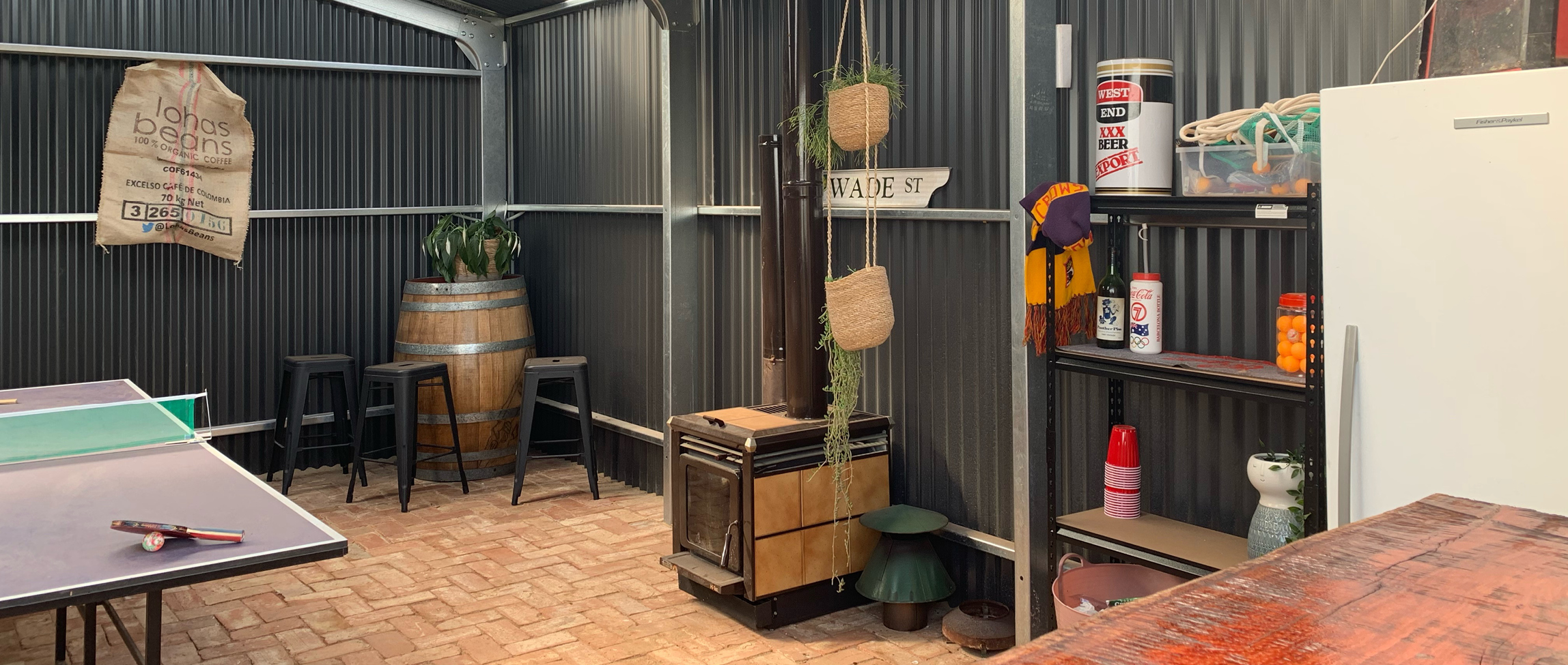 Wade and partner Maddie were looking for an outdoor entertaining solution to complement their native backyard to suit all seasons. Situated in the Adelaide Hills, South Australia, the couple wanted a space they could incorporate a fireplace into for the cold winter nights. Wade and Maddie visited Stratco Mount Barker and spoke to one of our HowTo Experts about their dream backyard and Stratco Shed. The team created a 3D design to visualise exactly where the shed was going. The Stratco Shed fit the purpose of an entertainment shed, or man cave if you like, ready to entertain family & friends all year round. Wade installed the gable roof shed himself with the help of some friends over 2 days, thanks to Stratco’s easy to follow instructions.