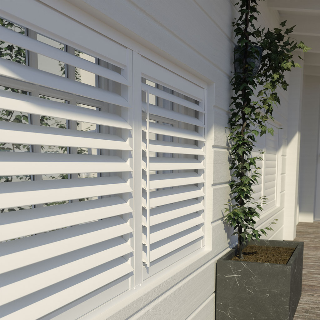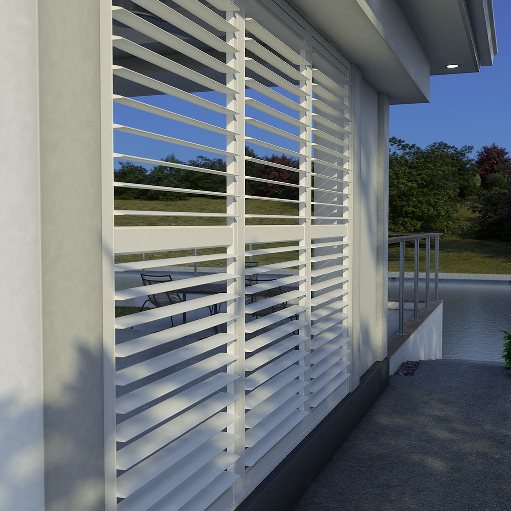Nirvana shutters are a stylish horizontal operable louvre solution offering a range of benefits such as enclosing an external void space, protection from natural elements or providing privacy to patio enclosures.